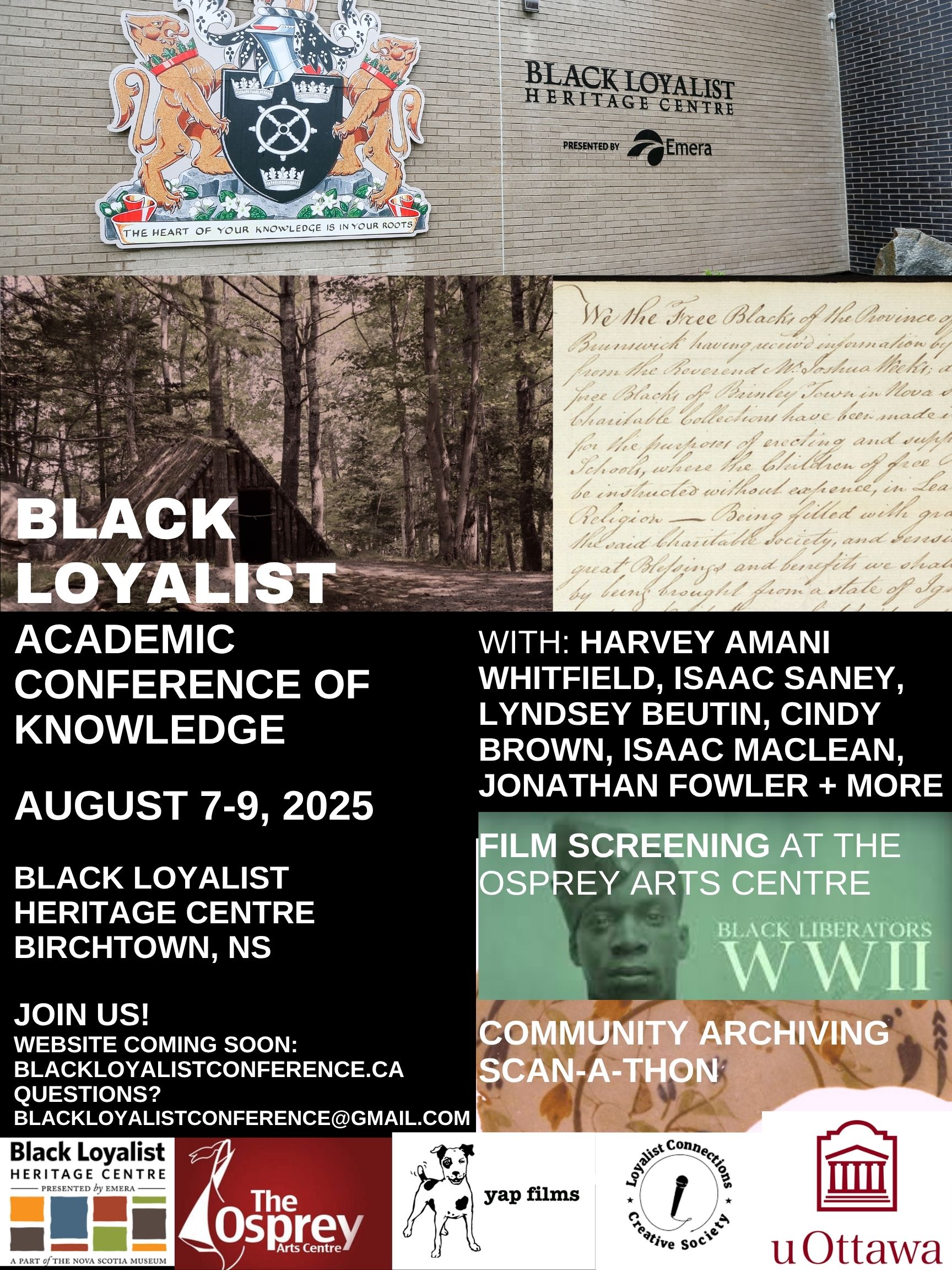 We hope to see you at the conference! This conference is generously funded by the Black Loyalist Heritage Society, with a portion of costs covered by the University of Ottawa. Registration is free for community members and students. We recognize that travel and accommodation costs when travelling to the South Shore region can be steep. Most of all, we want to make it possible for everyone to attend. We are suggesting a sliding scale fee of $250 mainly for full-time academics with plenty of institutional support (receipts will be provided). Any remaining funds will be offered to attendees without support to offset their travel costs (please keep your receipts!) Fees can be sent via e-transfer to: blackloyalistconference@gmail.com Presenters are automatically registered.